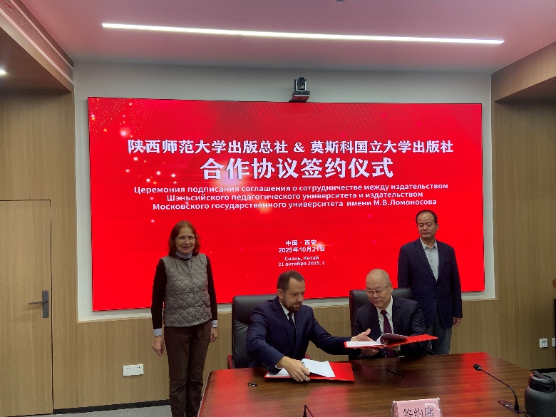 Было также подписано соглашение о сотрудничестве и совместной деятельности издательств МГУ и Шеньсийского педагогического университета, входящего в десятку лучших университетских издательств страны.