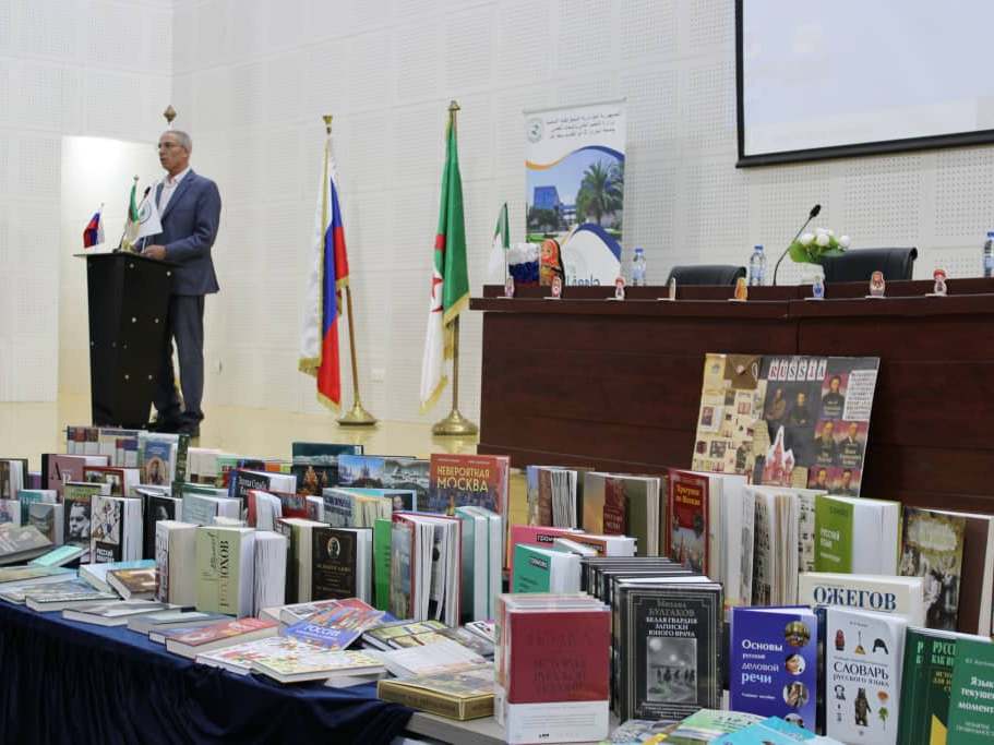 В торжественной церемонии передачи книг приняли участие Чрезвычайный и Полномочный Посол России в Алжире Алексей Соломатин, директор Университета Алжир-2, профессор Аль-Саид Рахмани, проректор по международным связям Ассия Касед, декан факультета арабского языка, литературы и восточных языков Али Бурнисса.