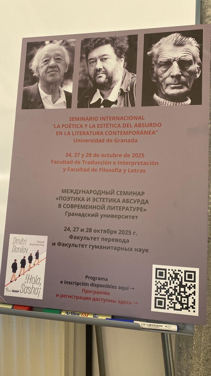 Международный семинар «Поэтика и эстетика абсурда в современной литературе» проходил с 24 по 28 октября в Гранадском университете на Факультете перевода и Факультете гуманитарных наук, а также в культурно-выставочном центре Русского музея в Малаге. В мероприятии, проходившем при поддержке МАПРЯЛ, принял личное участие известный российский писатель Дмитрий Данилов.