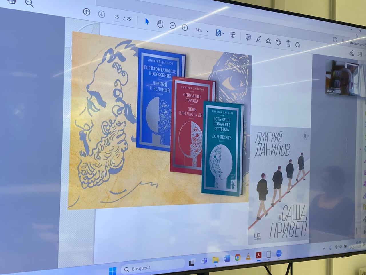 Известный литературовед и переводчик, профессор кафедры славянской филологии Гранадского университета Рафаэль Гусман Тирадо представил перевод на испанский язык романа Дмитрия Данилова «Саша, привет!», ставшего в 2022 году лауреатом премии «Ясная Поляна» в номинации «Современная русская проза». Ярким моментом встречи стало выступление и самого автора: российский писатель Дмитрий Данилов принял очное участие в мероприятии и выступил с докладом «Как стать писателем? Премии для писателей».