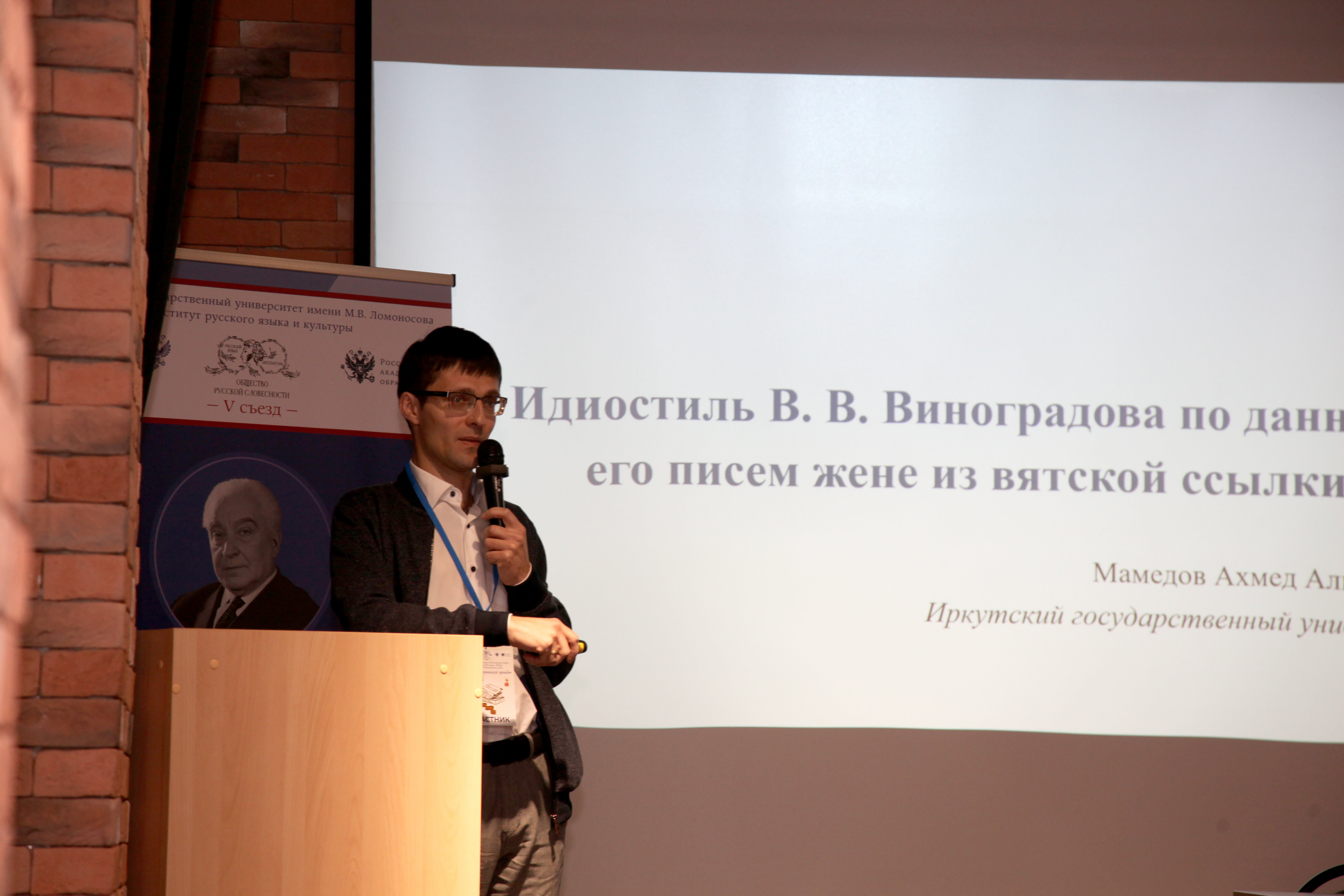 Открыло работу пленума приветствие президента МАПРЯЛ Владимира Толстого. «Мы находимся в здании бывшего подготовительного факультета МГУ, где всю жизнь педагогом-русистом проработала моя мама. Я приходил сюда ребенком и вот возвращаюсь сюда в качестве президента МАПРЯЛ. Имена моих предшественников вызывают невероятное уважение и даже священный трепет, потому что это люди, которые для нашей лингвистики, для русского языка сделали невероятно много, каждый из них. И то, что первое заседание Пленума сегодня посвящено юбилею Виктора Владимировича Виноградова, у которого в том числе учился мой отец Илья Андреевич, по-моему, важно и символично», – подчеркнул Владимир Ильич.