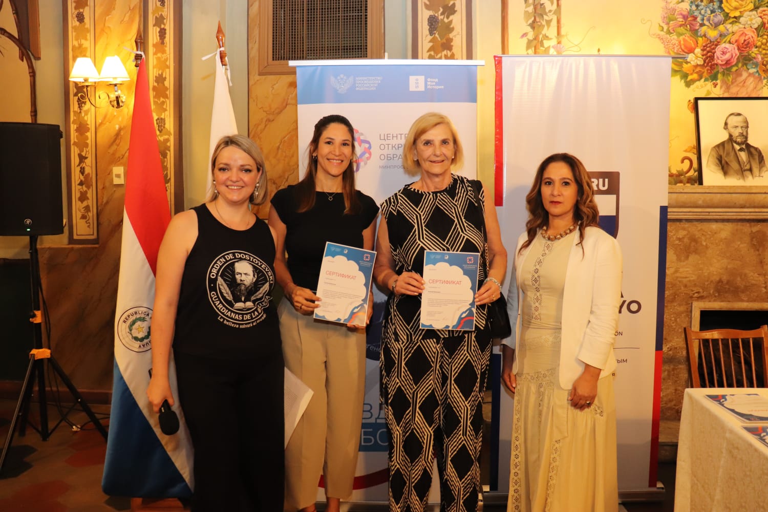 Одним из важных моментов вечера стала презентация итогов деятельности Клуба. В рамках мероприятия также состоялось вручение сертификатов первым выпускникам Центра Открытого Образования, созданного в этом году на базе Парагвайско-Российской палаты. Центр призван развивать интерес к русскому языку и культуре, предоставляя образовательные программы широкой аудитории.
